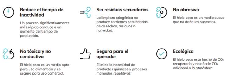 Es una técnica de limpieza industrial basada en la proyección de partículas de CO2 en estado sólido, es decir, hielo seco. El hielo seco es proyectado a altas velocidades con la ayuda de aire comprimido y empacta la superficie para limpiarla. Este proceso es una característica única del hielo seco, lo que lo hace ideal para limpiar